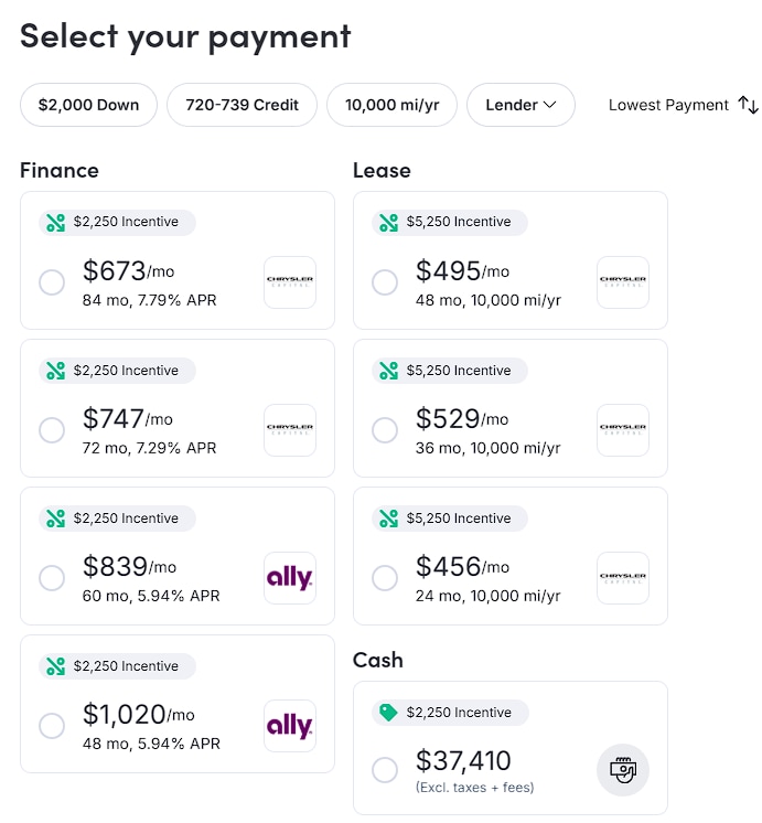 ÂCompare lease, finance, and cash offers with real-time rates and monthly pricing.