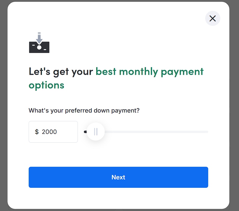 ÂStart by entering your preferred down payment. Everything adjusts to fit your budget.