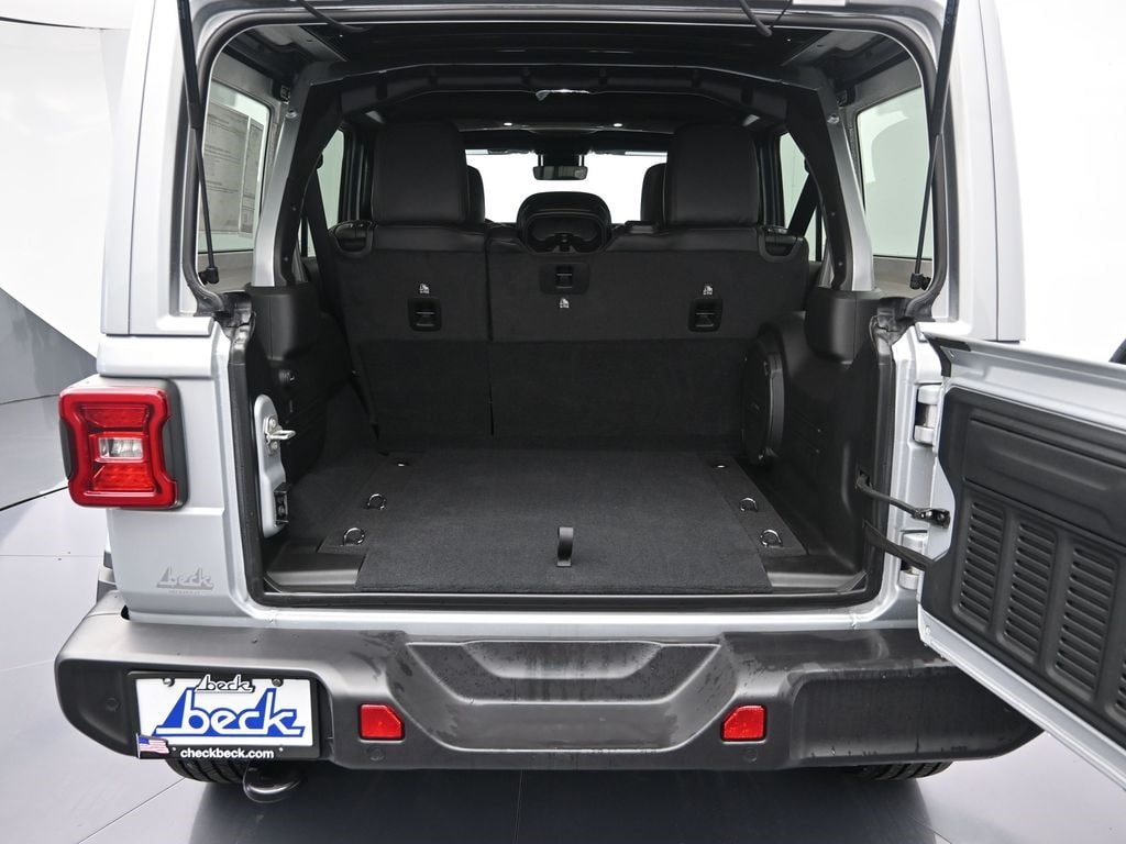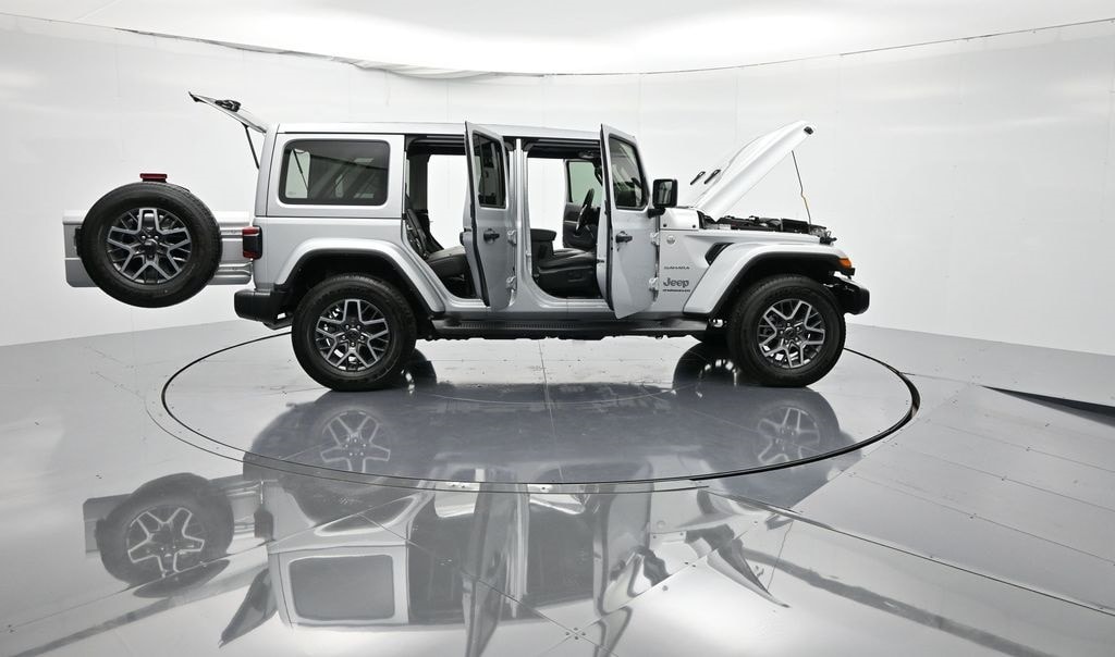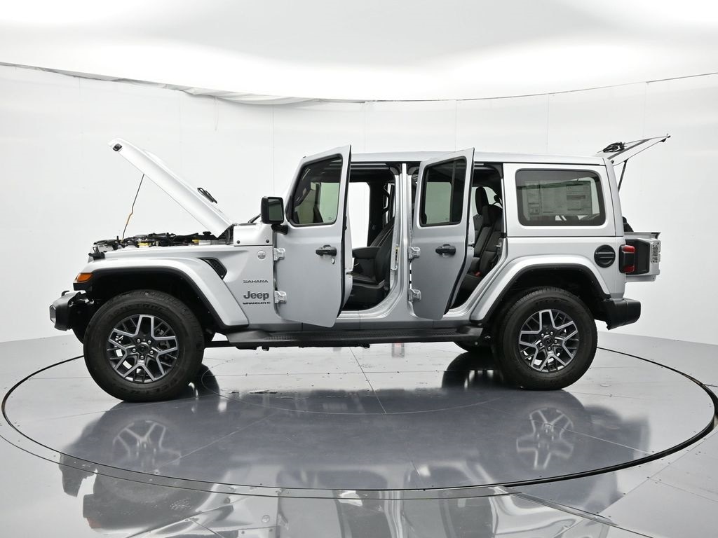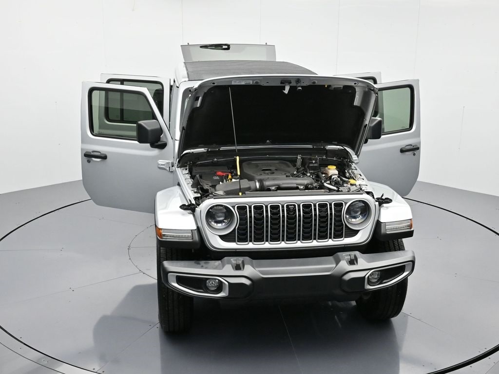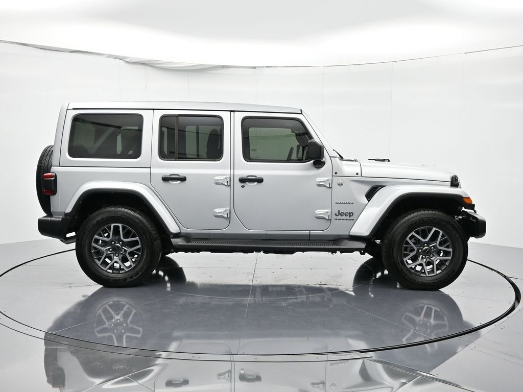 Quick Order Package 22G Sahara, Safety Group (Auto High Beam Headlamp Control, Blind Spot & Cross Path Detection, and ParkSense Rear Park Assist System), Technology Group (12.3" Touchscreen Display, 4G LTE Wi-Fi Hot Spot, Alpine Premium Audio System, Apple CarPlay, Auto-Dimming Rear-View Mirror, Connected Travel & Traffic Services, Connectivity - US/Canada, Disassociated Touchscreen Display, Google Android Auto, GPS Navigation, HD Radio, Integrated Center Stack Radio, Integrated Off-Road Camera, Integrated Voice Command w/Bluetooth, Radio: Uconnect 5 Nav w/12.3" Display, SiriusXM Radio Service, SiriusXM w/360L, and Universal Garage Door Opener), 110 MPH Vehicle Max Speed Calibration, 3.45 Overall Top Gear Ratio, 4-Wheel Disc Brakes, 8 Speakers, ABS brakes, Air Conditioning, Alloy wheels, AM/FM radio: SiriusXM, Apple CarPlay/Android Auto, Automatic temperature control, Aux Battery, Brake assist, Cloth Low-Back Bucket Seats, Compass, Delay-off headlights, Driver door bin, Driver vanity mirror, Dual front impact airbags, Dual front side impact airbags, Electronic Stability Control, Emergency communication system: Jeep Connect, Front anti-roll bar, Front Bucket Seats, Front Center Armrest w/Storage, Front dual zone A/C, Front fog lights, Front reading lights, Fully automatic headlights, Heated door mirrors, Heated front seats, Heated steering wheel, Heavy Duty Suspension w/Gas Shocks, Illuminated entry, Integrated roll-over protection, Low tire pressure warning, MOPAR All-Weather Floor Mats, Non-Lock Fuel Cap w/o Discriminator, Occupant sensing airbag, Outside temperature display, Overhead airbag, Panic alarm, ParkView Rear Back-Up Camera, Passenger door bin, Passenger vanity mirror, Power door mirrors, Power steering, Power Top Quarter Window Storage Bag, Power windows, Radio data system, Radio: Uconnect 5 w/12.3" Display, Rear anti-roll bar, Rear reading lights, Rear Window Defroster, Rear Window Wiper/Washer, Remote keyless entry, Removable Rear Quarter Windows, Security system, Side Steps, Sky 1-Touch Power Top, Speed control, Split folding rear seat, Steering wheel mounted audio controls, Stop-Start Dual Battery System, Tachometer, Telescoping steering wheel, Tilt steering wheel, Traction control, Trip computer, Variably intermittent wipers, Voltmeter, and Wheels: 18" x 7.5" Machine/Painted Gray.