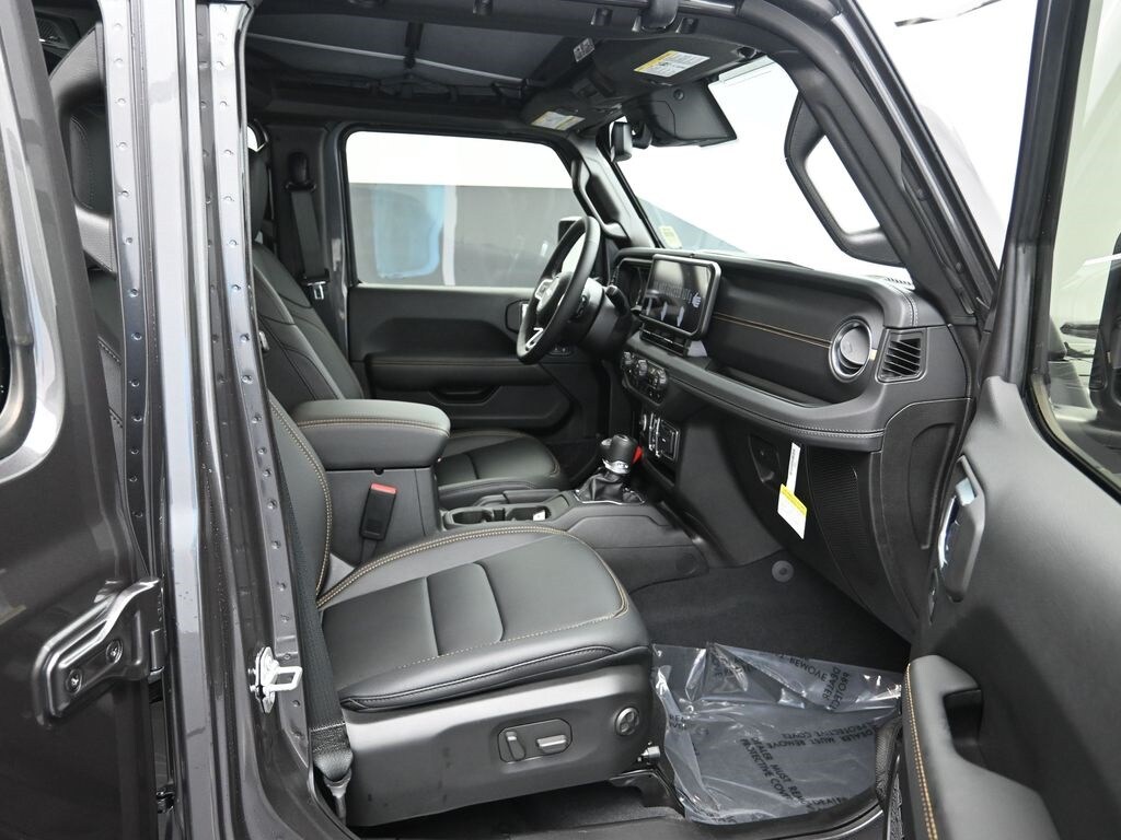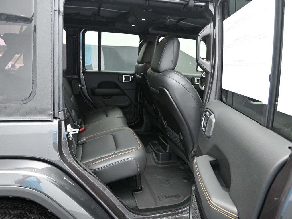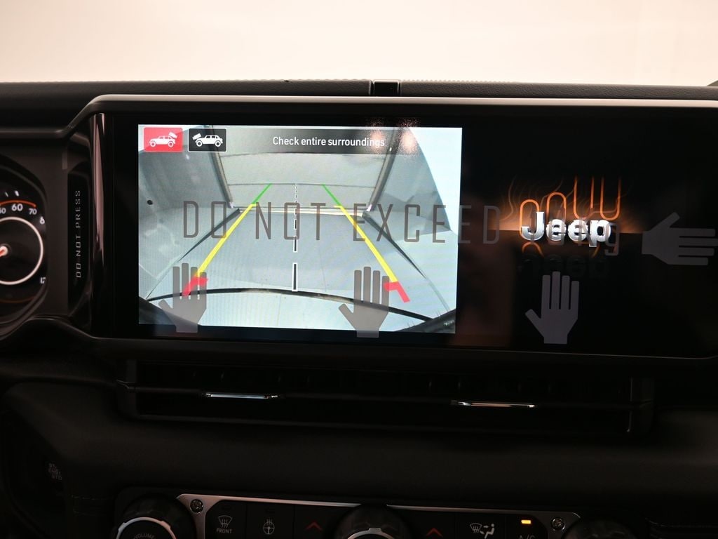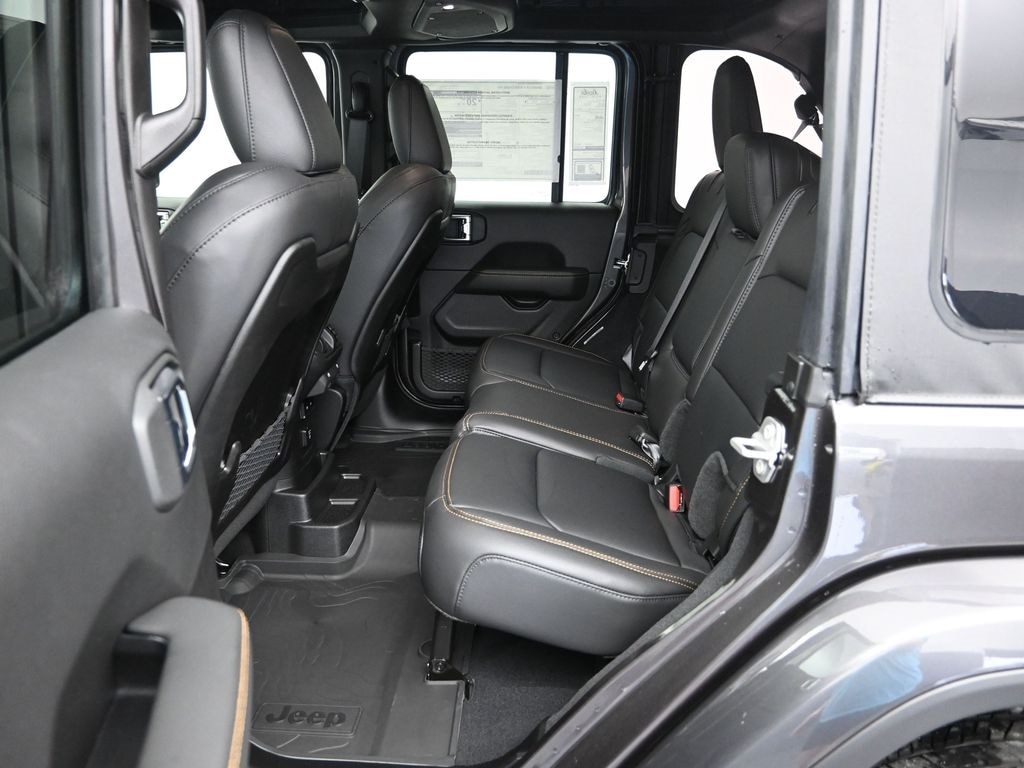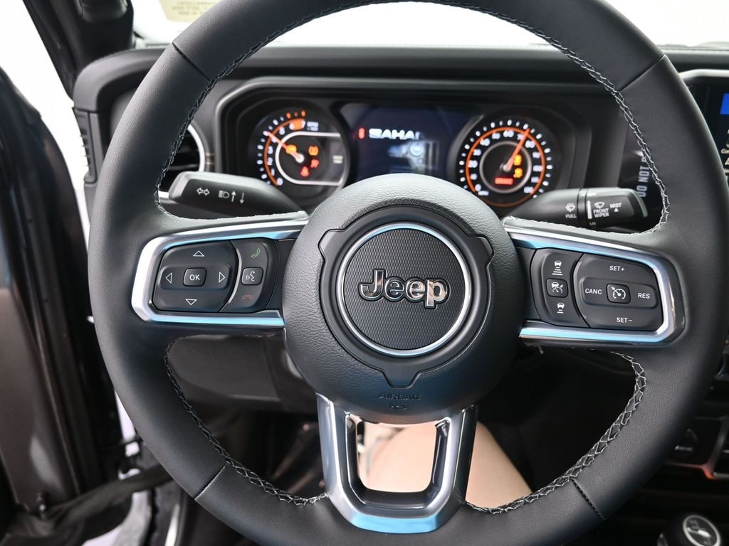 Quick Order Package 24G Sahara, Technology Group (12.3" Touchscreen Display, 4G LTE Wi-Fi Hot Spot, Apple CarPlay, Auto-Dimming Rear-View Mirror, Connected Travel & Traffic Services, Connectivity - US/Canada, Google Android Auto, GPS Navigation, HD Radio, Integrated Off-Road Camera, Integrated Voice Command w/Bluetooth, Radio: Uconnect 5 Nav w/12.3" Display, SiriusXM Radio Service, SiriusXM w/360L, and Universal Garage Door Opener), 110 MPH Vehicle Max Speed Calibration, 3.45 Overall Top Gear Ratio, 4-Wheel Disc Brakes, 8 Speakers, ABS brakes, Air Conditioning, Alloy wheels, Alpine Premium Audio System, AM/FM radio: SiriusXM, Apple CarPlay/Android Auto, Automatic temperature control, Aux Battery, Brake assist, Cloth Low-Back Bucket Seats, Compass, Delay-off headlights, Driver door bin, Driver vanity mirror, Dual front impact airbags, Dual front side impact airbags, Electronic Stability Control, Emergency communication system: Jeep Connect, Front anti-roll bar, Front Bucket Seats, Front Center Armrest w/Storage, Front dual zone A/C, Front fog lights, Front reading lights, Fully automatic headlights, Heated door mirrors, Heated front seats, Heated steering wheel, Heavy Duty Suspension w/Gas Shocks, Illuminated entry, Integrated Center Stack Radio, Integrated roll-over protection, Low tire pressure warning, MOPAR All-Weather Floor Mats, Non-Lock Fuel Cap w/o Discriminator, Occupant sensing airbag, Outside temperature display, Overhead airbag, Panic alarm, ParkView Rear Back-Up Camera, Passenger door bin, Passenger vanity mirror, Power door mirrors, Power steering, Power windows, Radio data system, Radio: Uconnect 5 w/12.3" Display, Rear anti-roll bar, Rear reading lights, Remote keyless entry, Security system, Side Steps, Speed control, Split folding rear seat, Steering wheel mounted audio controls, Stop-Start Dual Battery System, Tachometer, Telescoping steering wheel, Tilt steering wheel, Traction control, Trip computer, Variably intermittent wipers, Voltmeter, and Wheels: 18" x 7.5" Machine/Painted Gray.