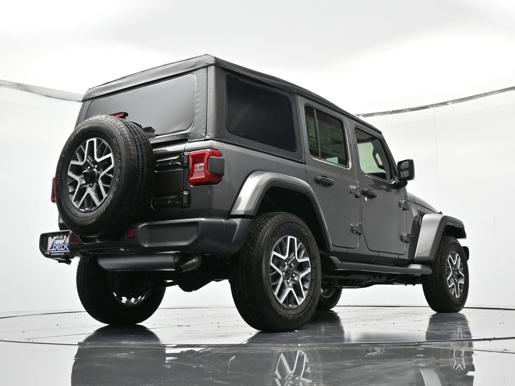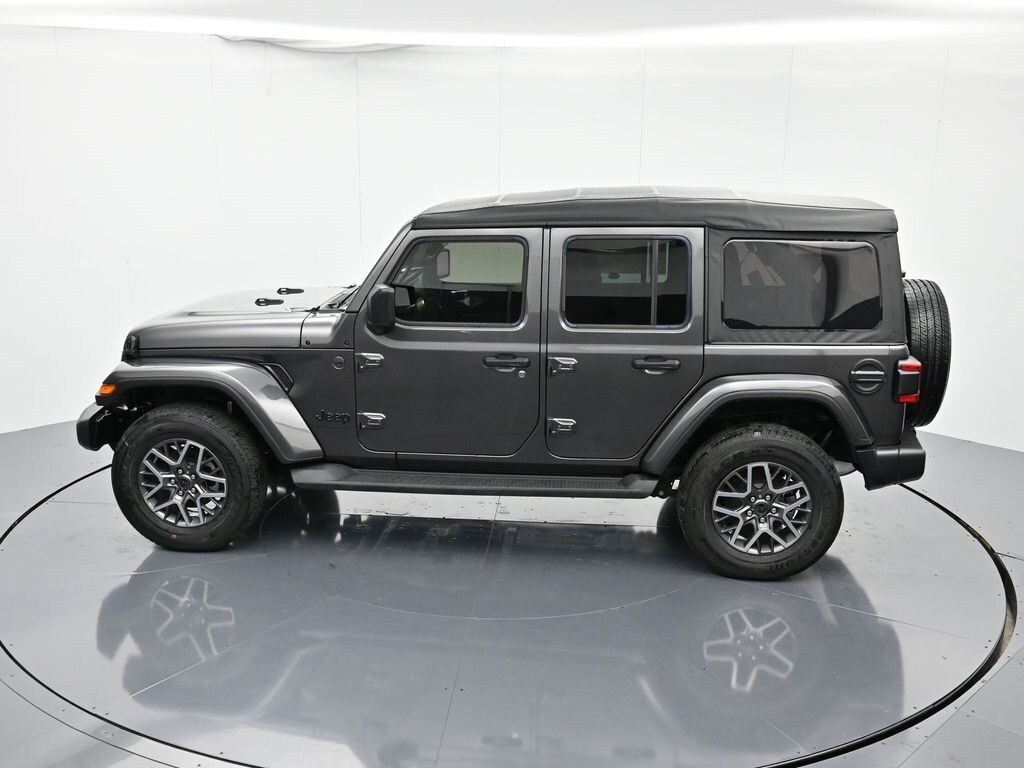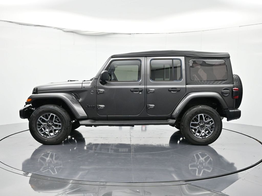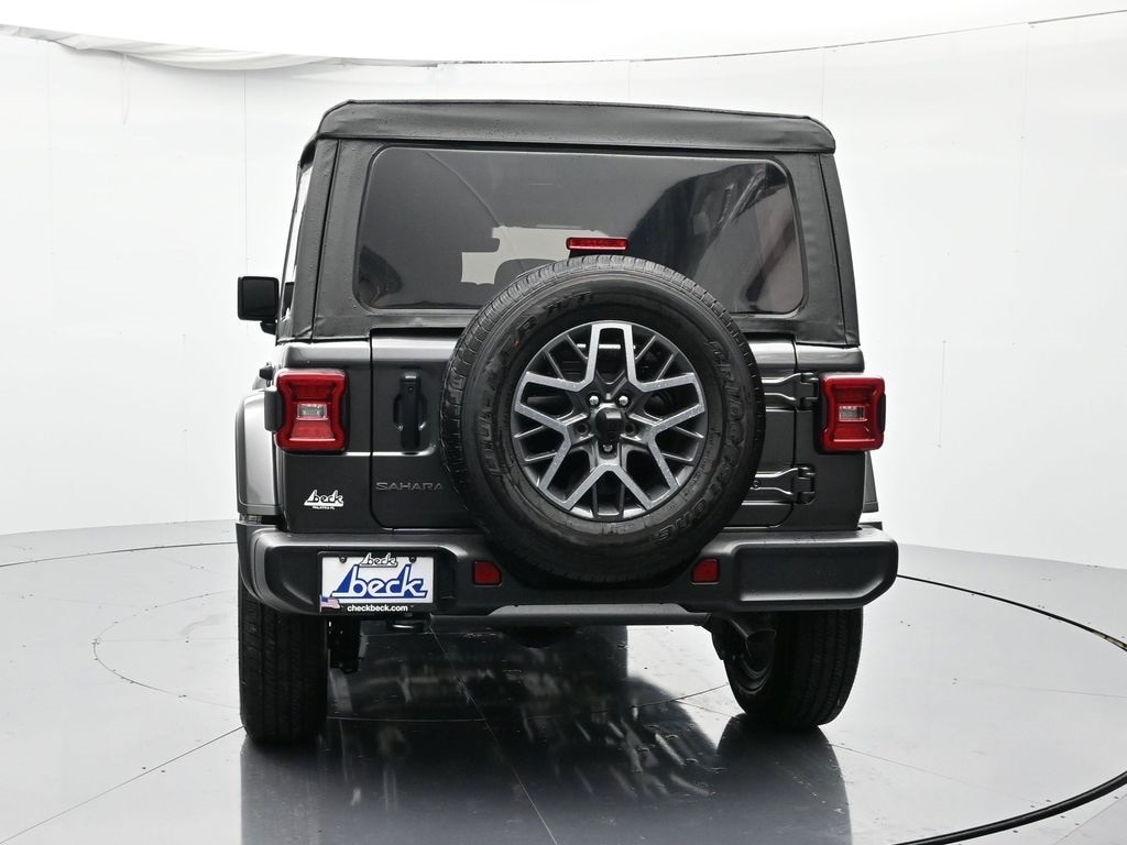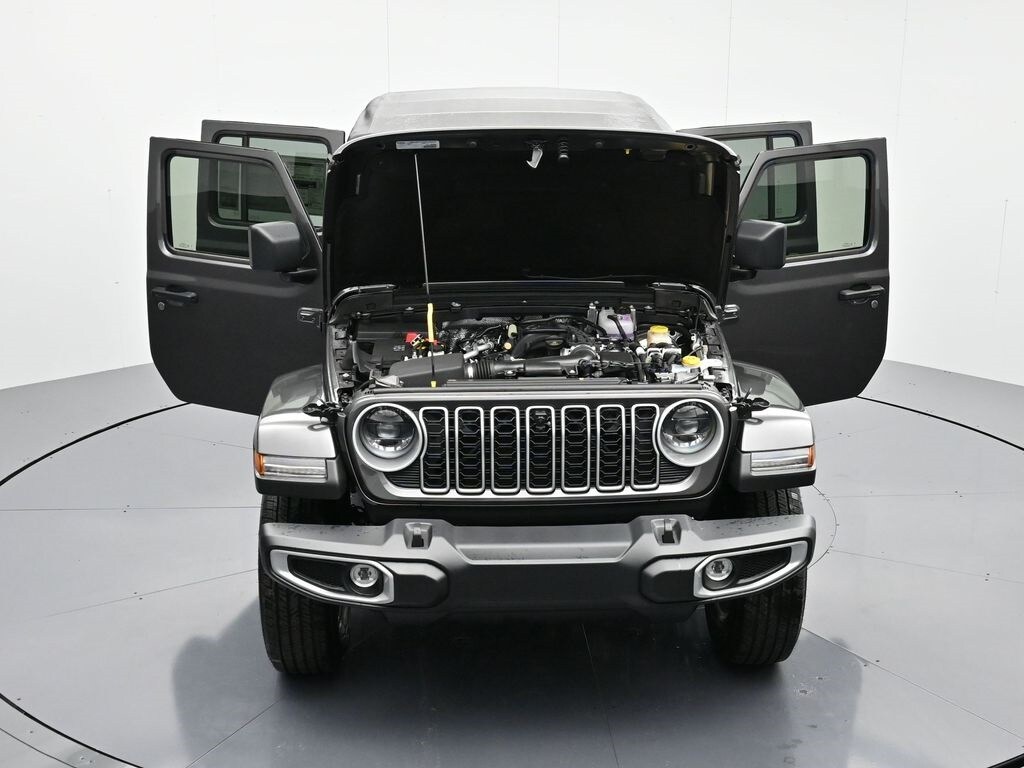 Quick Order Package 24G Sahara, Technology Group (12.3" Touchscreen Display, 4G LTE Wi-Fi Hot Spot, Apple CarPlay, Auto-Dimming Rear-View Mirror, Connected Travel & Traffic Services, Connectivity - US/Canada, Google Android Auto, GPS Navigation, HD Radio, Integrated Off-Road Camera, Integrated Voice Command w/Bluetooth, Radio: Uconnect 5 Nav w/12.3" Display, SiriusXM Radio Service, SiriusXM w/360L, and Universal Garage Door Opener), 110 MPH Vehicle Max Speed Calibration, 3.45 Overall Top Gear Ratio, 4-Wheel Disc Brakes, 8 Speakers, ABS brakes, Air Conditioning, Alloy wheels, Alpine Premium Audio System, AM/FM radio: SiriusXM, Apple CarPlay/Android Auto, Automatic temperature control, Aux Battery, Brake assist, Cloth Low-Back Bucket Seats, Compass, Delay-off headlights, Driver door bin, Driver vanity mirror, Dual front impact airbags, Dual front side impact airbags, Electronic Stability Control, Emergency communication system: Jeep Connect, Front anti-roll bar, Front Bucket Seats, Front Center Armrest w/Storage, Front dual zone A/C, Front fog lights, Front reading lights, Fully automatic headlights, Heated door mirrors, Heated front seats, Heated steering wheel, Heavy Duty Suspension w/Gas Shocks, Illuminated entry, Integrated Center Stack Radio, Integrated roll-over protection, Low tire pressure warning, MOPAR All-Weather Floor Mats, Non-Lock Fuel Cap w/o Discriminator, Occupant sensing airbag, Outside temperature display, Overhead airbag, Panic alarm, ParkView Rear Back-Up Camera, Passenger door bin, Passenger vanity mirror, Power door mirrors, Power steering, Power windows, Radio data system, Radio: Uconnect 5 w/12.3" Display, Rear anti-roll bar, Rear reading lights, Remote keyless entry, Security system, Side Steps, Speed control, Split folding rear seat, Steering wheel mounted audio controls, Stop-Start Dual Battery System, Tachometer, Telescoping steering wheel, Tilt steering wheel, Traction control, Trip computer, Variably intermittent wipers, Voltmeter, and Wheels: 18" x 7.5" Machine/Painted Gray.