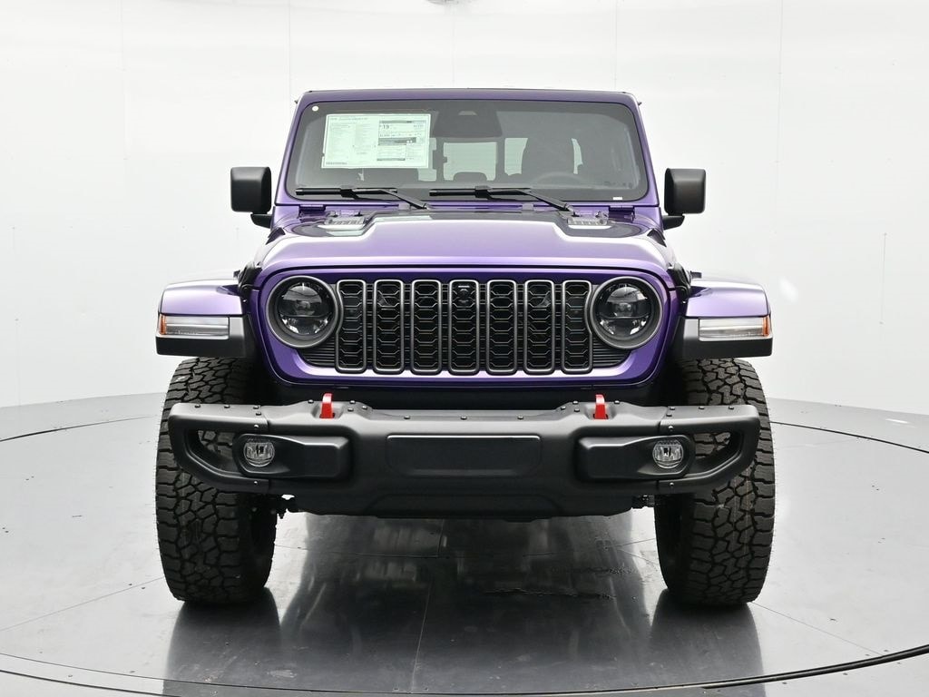 Quick Order Package 24Y Rubicon X (Alpine Premium Audio System, Auto High Beam Headlamp Control, Auto-Dimming Rear-View Mirror, Blind Spot and Cross Path Detection, Bluetooth Wireless Speaker, Body Color 3-Piece Hard Top, Body Color Rubicon Highline Flare, Freedom Panel Storage Bag, Full Length Floor Console Premium Armrest, Heated Front Seats, Heated Steering Wheel, Integrated Off-Road Camera, Integrated Voice Command with Bluetooth, Leather Wrapped Park Brake Handle, Leather Wrapped Shift Knob, MOPAR Hardtop Headliner, ParkSense Rear Park Assist System, Power 4-Way Driver Lumbar Adjust, Power 4-Way Passenger Lumbar Adjust, Power Adjust 8-Way Driver Seat, Power Adjust 8-Way Front Passenger Seat, Power Adjust Nappa Leather Seats, Premium Door Trim Panel, Radio: Uconnect 5 Navigation with 12.3" Display, Rear Armrest with Cupholder Seat, Rear Sliding Window, Rear Window Defroster, Rubicon Hood Top Decal, Steel Front Bumper, Universal Garage Door Opener, and USB Host Flip), Steel Power Dome Hood Package (Power Dome Dual Vented Hood), 110 Mph Vehicle Max Speed Calibration, 12.3" Touchscreen Display, 4-Wheel Disc Brakes, 4.10 Rear Axle Ratio, 4G LTE Wi-Fi Hot Spot, 8 Speakers, ABS brakes, Air Conditioning, Alexa Built-in, Alloy wheels, AM/FM radio: SiriusXM with 360L, Apple CarPlay, Apple CarPlay/Android Auto, Automatic temperature control, Brake assist, Cloth Low-Back Bucket Seats, Compass, Connectivity - US/Canada, Delay-off headlights, Driver door bin, Driver vanity mirror, Dual front impact airbags, Dual front side impact airbags, Electronic Stability Control, Emergency communication system: Jeep Connect, Front anti-roll bar, Front Bucket Seats, Front Center Armrest w/Storage, Front dual zone A/C, Front fog lights, Front reading lights, Fully automatic headlights, Google Android Auto, Heated door mirrors, Illuminated entry, Integrated roll-over protection, Low tire pressure warning, MOPAR All-Weather Slush Mats, MOPAR Hard Tri-Fold Tonneau Cover, MOPAR Spray in Bedliner, Occupant sensing airbag, Outside temperature display, Overhead airbag, Panic alarm, Passenger door bin, Passenger vanity mirror, Performance Suspension, Power door mirrors, Power steering, Power windows, Radio data system, Radio: Uconnect 5 with 12.3" Display, Rear anti-roll bar, Rear reading lights, Remote keyless entry, Security system, Speed control, Split folding rear seat, Steering wheel mounted audio controls, Tachometer, Telescoping steering wheel, Tilt steering wheel, Traction control, Trip computer, Variably intermittent wipers, Voltmeter, and Wheels: 17" x 7.5" Machined/Painted Black.