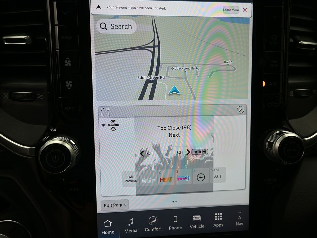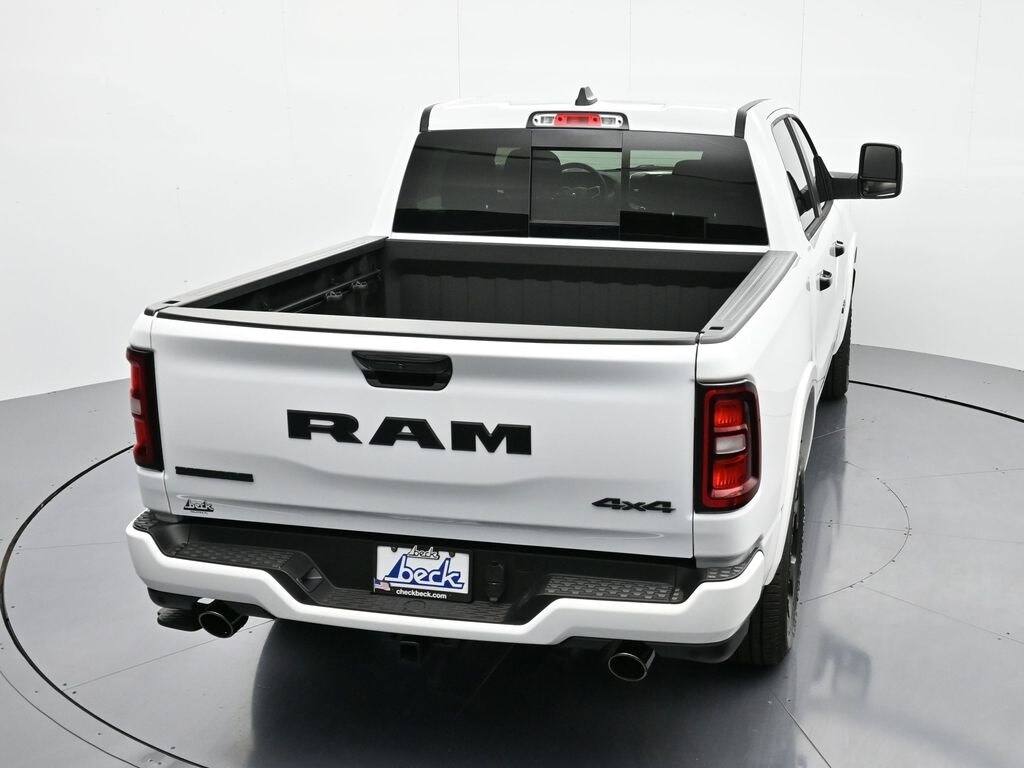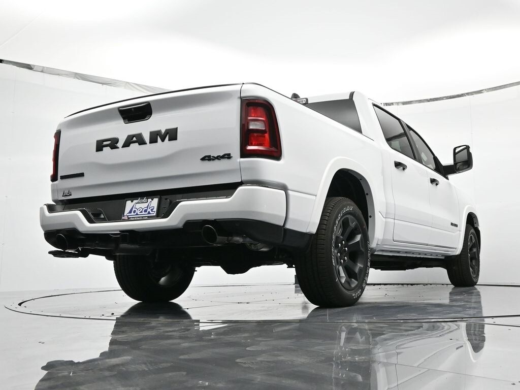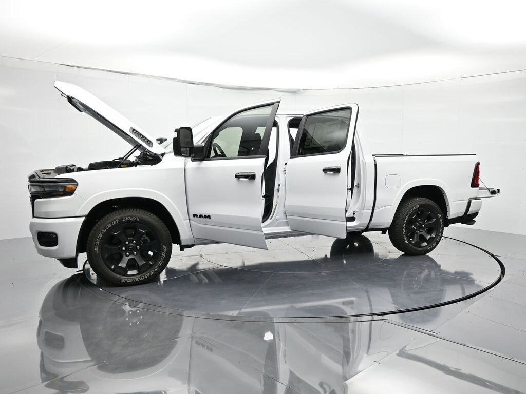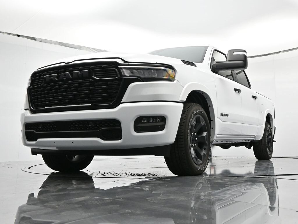 Bed Utility Group (Exterior 115V AC Outlet, MOPAR 4 Adjustable Cargo Tie-Down Hooks, MOPAR Spray In Bedliner, and Pick-Up Box Lighting), Big Horn Level 2 Equipment Group (115V Auxiliary Power Outlet, 115V Auxiliary Rear Power Outlet, 12" Touchscreen Display, 2nd Row In Floor Storage Bins, 400W Inverter, 4G LTE Wi-Fi Hot Spot, 9 Amplified Speakers w/Subwoofer, Air Conditioning ATC w/Dual Zone Control, Apple CarPlay, Auto Power-Folding Mirrors, Auto-Dimming Exterior Driver Mirror, Auto-Dimming Rear-View Mirror, Black Exterior Mirrors, Black Premium Power Mirrors, Cluster 7.0" TFT Color Display, Configurable Drive Mode, Connected Travel & Traffic Services, Connectivity - US/Canada, Convex Wide-Angle Exterior Mirror Insert, Exterior Mirrors Courtesy Lamps, Exterior Mirrors w/Heating Element, Exterior Mirrors w/Supplemental Signals, Glove Box Lamp, Google Android Auto, GPS Antenna Input, GPS Navigation, HD Radio, Heated Front Seats, Heated Steering Wheel, Integrated Voice Command w/Bluetooth, Leather Wrapped Steering Wheel, LED Dome Lamp w/On/Off Switch, LED Footwell Lighting, Media Hub w/2 Charge Only USBs, Overhead LED Lamps, Power 2-Way Driver Lumbar Adjust, Power Adjust 8-Way Driver Seat, Power Adjustable Pedals, Premium Overhead Console, Radio: Uconnect 5 Nav w/12.0" Display, Rear Power Sliding Window, Rear Window Defroster, Remote Tailgate Release, Security Alarm, SiriusXM w/360L, Steering Wheel Mounted Audio Controls, Sun Visors w/Illuminated Vanity Mirrors, Universal Garage Door Opener, and USB Host Flip), Night Edition (3 Rear Seat Head Restraints, 4 Way Front Headrests, Accent Color Door Handles, Accent Color Premium Power Mirrors, Accent Color Tailgate Handle, Anti-Spin Differential Rear Axle, Black Exterior Truck Badging, Black Headlamp Bezels, Black Interior Accents, Black Painted Exterior Mirrors Caps, Black Tail Lamp Bezels, Body Color Front Bumper, Body Color Rear Bumper w/Step Pads, Bucket Seats, Deluxe Cloth Bucket Seats, Front Seat Back Map Pockets, Full Length Floor Console, Grille Black Surround Black Mesh, Manual Adjust 4-Way Front Passenger Seat, RAM Grille Badge - Black, Rear 60/40 Folding Seat, Rear Center Armrest, and Wheels: 20" x 9.0" Aluminum Painted Clad), Quick Order Package 21Z Big Horn, Trailer Tow Group (Black Trailer Tow Power Mirrors, Manual Folding Exterior Mirrors, Manual Telescoping Mirrors, Mirror Clearance/Running Lights, Power-Adjustable Convex Aux Mirrors, Trailer Brake Control, Trailer Reverse Steering Control, Trailer Tire Pressure Monitoring System, and Trailer Tow Mirrors), 4-Wheel Disc Brakes, 6 Speakers, ABS brakes, Air Conditioning, Alloy wheels, AM/FM radio, Apple CarPlay/Android Auto, Auto High-beam Headlights, Brake assist, Bumpers: chrome, Cloth Bench Seat, Compass, Delay-off headlights, Driver door bin, Dual front impact airbags, Dual front side impact airbags, Electronic Stability Control, Front anti-roll bar, Front Center Armrest w/Storage, Front fog lights, Front reading lights, Front wheel independent suspension, Fully automatic headlights, Heated door mirrors, Illuminated entry, Low tire pressure warning, MOPAR Front & Rear Rubber Floor Mats, Occupant sensing airbag, Outside temperature display, Overhead airbag, Overhead console, Panic alarm, ParkView Rear Back-Up Camera, Passenger door bin, Passenger vanity mirror, Power door mirrors, Power steering, Power windows, Radio data system, Radio: Uconnect 5 W w/8.4" Display, RAM Grille Badge - Chrome, Rear anti-roll bar, Rear seat center armrest, Rear step bumper, Remote keyless entry, Speed control, Split folding rear seat, Supplier Part Tracking (J-1), Tachometer, Telescoping steering wheel, Tilt steering wheel, Traction control, Trip computer, Variably intermittent wipers, Voltmeter, and Wheels: 18" x 8" Cast-Aluminum Painted.