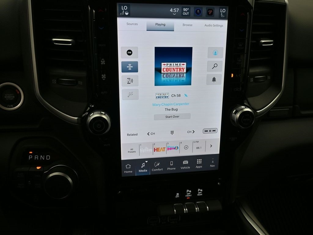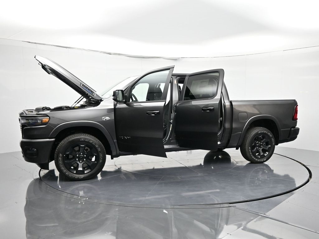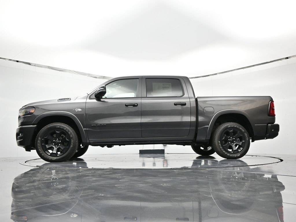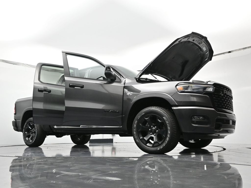 Big Horn Level 2 Equipment Group (115V Auxiliary Power Outlet, 115V Auxiliary Rear Power Outlet, 12" Touchscreen Display, 3 Rear Seat Head Restraints, 4 Way Front Headrests, 400W Inverter, 4G LTE Wi-Fi Hot Spot, Apple CarPlay, Auto Power-Folding Mirrors, Auto-Dimming Exterior Driver Mirror, Auto-Dimming Rear-View Mirror, Black Exterior Mirrors, Black Premium Power Mirrors, Body Color Fender Flares, Bucket Seats, Center Console Parts Module, Cluster 7.0" TFT Color Display, Configurable Drive Mode, Connectivity - US/Canada, Convex Wide-Angle Exterior Mirror Insert, Deluxe Cloth Bucket Seats, Disassociated Touchscreen Display, Exterior Mirrors Courtesy Lamps, Front Seat Back Map Pockets, Full Length Floor Console, Glove Box Lamp, Google Android Auto, GPS Antenna Input, GPS Navigation, HD Radio, Heated Front Seats, Heated Steering Wheel, Integrated Center Stack Radio, Leather Wrapped Steering Wheel, LED Footwell Lighting, Manual Adjust 4-Way Front Passenger Seat, Overhead LED Lamps, Power 2-Way Driver Lumbar Adjust, Power Adjust 8-Way Driver Seat, Power Adjustable Pedals, Premium Overhead Console, Rear 60/40 Folding Seat, Rear Center Armrest, Rear Power Sliding Window, Rear Window Defroster, Remote Tailgate Release, Security Alarm, SiriusXM Radio Service, Steering Wheel Mounted Audio Controls, Universal Garage Door Opener, and USB Host Flip), Night Edition (Accent Color Door Handles, Accent Color Premium Power Mirrors, Accent Color Tailgate Handle, Anti-Spin Differential Rear Axle, Black Exterior Truck Badging, Black Headlamp Bezels, Black Interior Accents, Black Painted Exterior Mirrors Caps, Black Tail Lamp Bezels, Body Color Front Bumper, Grille Black Surround Black Mesh, RAM Grille Badge - Black, and Wheels: 20" x 9.0" Aluminum Painted Clad), Quick Order Package 27Z Big Horn, 33 Gallon Fuel Tank, 4-Wheel Disc Brakes, 48V Belt Starter Generator, 6 Speakers, ABS brakes, Air Conditioning, Alloy wheels, AM/FM radio, Apple CarPlay/Android Auto, Auto High-beam Headlights, Brake assist, Bumpers: chrome, Cloth Bucket Seats, Compass, Delay-off headlights, Driver door bin, Dual front impact airbags, Dual front side impact airbags, Electronic Stability Control, Front anti-roll bar, Front Bucket Seats, Front Center Armrest w/Storage, Front fog lights, Front reading lights, Front wheel independent suspension, Fully automatic headlights, Heated door mirrors, Illuminated entry, Low tire pressure warning, Manual Adjust 4-Way Driver Seat, Manual Folding Exterior Mirrors, Occupant sensing airbag, Outside temperature display, Overhead airbag, Overhead console, Panic alarm, ParkView Rear Back-Up Camera, Passenger door bin, Passenger vanity mirror, Power door mirrors, Power steering, Power windows, Radio data system, RAM Grille Badge - Chrome, Rear anti-roll bar, Rear step bumper, Rear Wheelhouse Liners, Remote keyless entry, Speed control, Supplier Part Tracking (J-1), Tachometer, Telescoping steering wheel, Tilt steering wheel, Traction control, Trip computer, Variably intermittent wipers, Voltmeter, and Wheels: 18" x 8" Cast-Aluminum Painted.