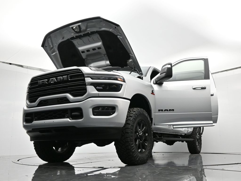 Laramie Level 2 Plus Equipment Group (#1 Seat Foam Cushion, 115V Auxiliary Rear Power Outlet, 14.4" Touchscreen Display, 2 Way Rear Headrest Seat, 4 Way Front Headrests, 4G LTE Wi-Fi Hot Spot, Active Lane Management System, Adaptive Steering System, Anti-Spin Differential Rear Axle, Apple CarPlay, Auto Dim Exterior Mirror, Auto High Beam Headlamp Control, Auto Power-Folding Mirrors, Auto-Dimming Exterior Passenger Mirror, Bucket Seats, Connectivity - US/Canada, Disassociated Touchscreen Display, Drowsy Driver Detection, Dual Wireless Charging Pad, Emergency Vehicle Alert System (EVAS), Exterior Mirrors Courtesy Lamps, For Details, Visit DriveUconnect.com, For More Info, Call 800-643-2112, Front Seat Back Map Pockets, Full Length Upgraded Floor Console, Google Android Auto, GPS Antenna Input, GPS Navigation, HD Radio, Heated Front Seats, Heated Steering Wheel, High Back Seats, Leather Trimmed Bucket Seats, LED Bed Lighting, Mirror Running Lights, MOPAR Deployable Bed Step, Off-Road Information Pages, Power 2-Way Driver Lumbar Adjust, Power 2-Way Passenger Lumbar Adjust, Power Adjust 8-Way Driver Seat, Power Adjust 8-Way Front Passenger Seat, Power Adjust Mirrors, Power Adjustable Convex Aux Mirrors, Power Deployable Running Boards, Power Heated Fold Telescope Mirrors w/Memory, Power Telescoping Mirrors, Rain Sensitive Windshield Wipers, Rear 60/40 Folding Seat, Remote Tailgate Release, Selectable Tire Fill Alert, SiriusXM Radio Service, Traffic Sign Recognition, and Trailer Tow Pages), Night Edition (Black Exterior Truck Badging, Black Wheel Center Hub, Body Color Grille Surround, Gloss Black Grille Billets/Accents, Sport Performance Hood, and Wheels: 20" x 8" Black Painted Aluminum), Quick Order Package 24H Laramie, 10 Speakers, 3.42 Axle Ratio, 4-Wheel Disc Brakes, ABS brakes, Air Conditioning, Alloy wheels, AM/FM radio: SiriusXM with 360L, Apple CarPlay/Android Auto, Auto-dimming Rear-View mirror, Automatic temperature control, Brake assist, Bumpers: body-color, Chrome Exterior Mirrors, Compass, Delay-off headlights, Driver door bin, Driver vanity mirror, Dual front impact airbags, Dual front side impact airbags, Electronic Stability Control, Front anti-roll bar, Front Center Armrest w/Storage, Front dual zone A/C, Front fog lights, Front reading lights, Fully automatic headlights, Garage door transmitter, Heated door mirrors, Heated front seats, Heated steering wheel, Illuminated entry, Leather Trim 40/20/40 Bench Seat, Low tire pressure warning, Navigation System, Occupant sensing airbag, Outside temperature display, Overhead airbag, Overhead console, Panic alarm, ParkView Rear Back-Up Camera, Passenger door bin, Passenger vanity mirror, Power door mirrors, Power driver seat, Power passenger seat, Power steering, Power windows, Radio data system, Rear anti-roll bar, Rear reading lights, Rear seat center armrest, Rear step bumper, Rear window defroster, Remote keyless entry, Security system, Speed control, Split folding rear seat, Steering wheel mounted audio controls, Tachometer, Tilt steering wheel, Traction control, Trip computer, Turn signal indicator mirrors, Variably intermittent wipers, Voltmeter, and Wheels: 18" x 8" Diamond Cut AluminuM. Price includes: $1000 - 2026 National Bonus Cash . Exp. 03/31/2026 $500 - 2026 National 2026 Military Bonus Cash . Exp. 01/04/2027